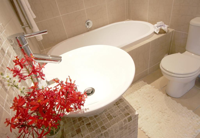 Luxury King/twin bed bath and shower en-suite - pool facing. Please advise whether you require King or Twin beds once you have confirmed your booking. All rooms are beautifully decorated in fresh light colors and white percale linen and the modern bathrooms are fitted with large showers or baths and tiled in timeless naturals.