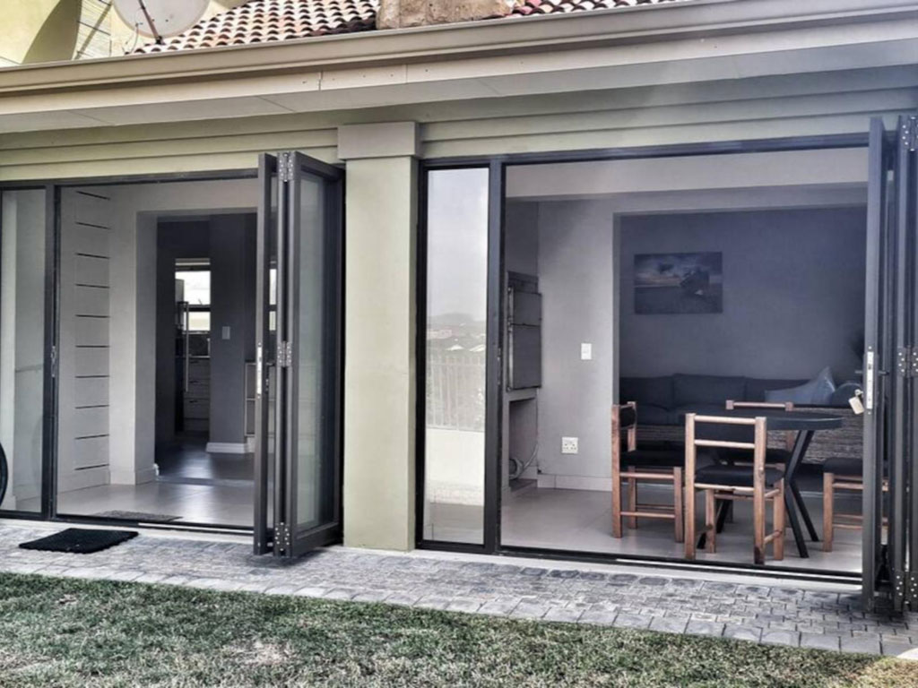 The wood-burning indoor braai area overlooks the private garden and patio. The villa has a private entrance and is situated on a large, shared property with a secure, on-site, open parking area.