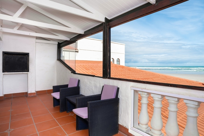 This sea-facing self-catering double room offers stunning ocean views and features a private entrance, an en-suite bathroom with a shower and toilet, and a comfortable bedroom with a queen-size bed. The unit also includes a small kitchen for your convenience and a spacious terrace equipped with braai facilities, providing direct access to the beach. Ideal for couples, the room combines comfort and convenience in a beautiful coastal setting.