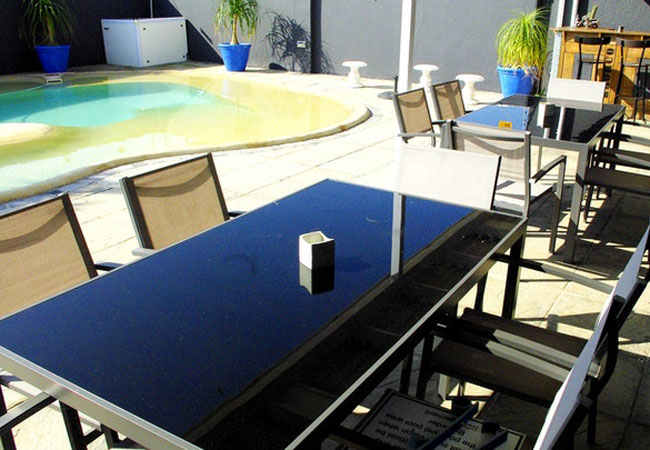 The guesthouse has a beach type swimming pool, braai area, bar room, security system and secure parking.