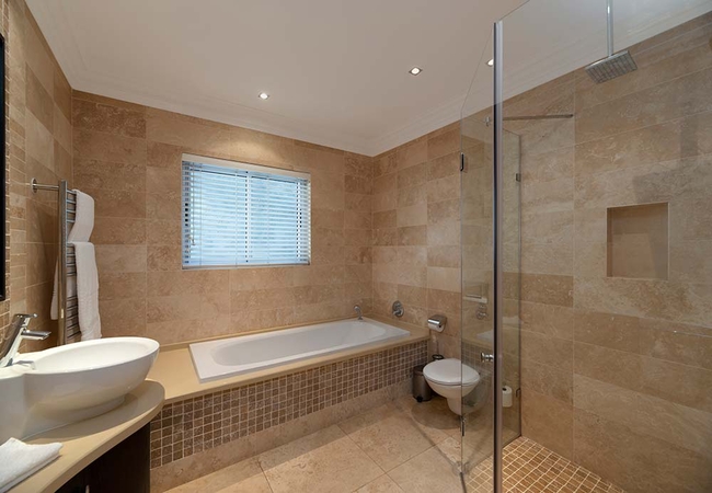 The second bedroom is furnished with two extra length single beds and is also west facing and has views of the western Head. This bedroom also has access to a spacious deck. The third bedroom is furnished with an extra length double bed and is east facing and has no lagoon view. Bedrooms two and three share a spacious bathroom fitted with a bath, shower, toilet and basin.
