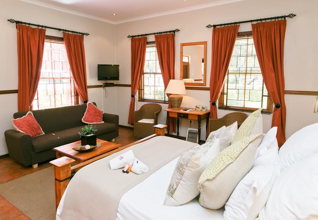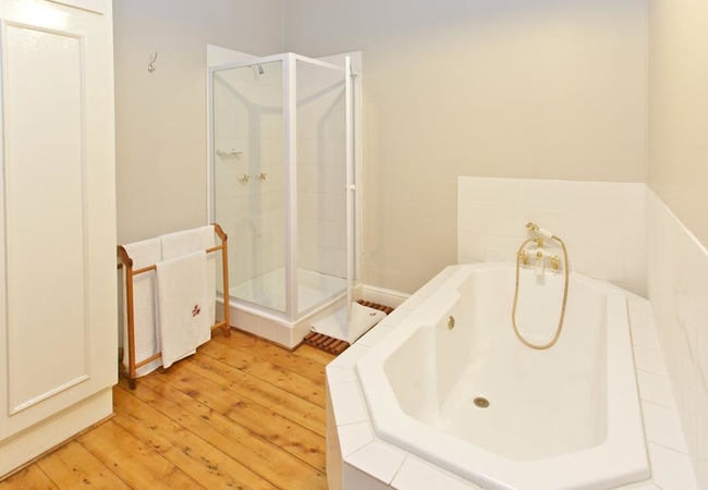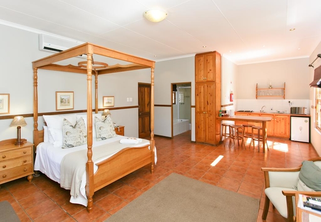 This cottage is suitable for families and sleeps four guests. There is one double bed and a sleeper couch, bar fridge, en-suite bathroom with bath and shower, air-con,tea and coffee facilities. All units have a bar fridge, an en-suite bathroom with a bath and shower, air-conditioning and tea / coffee making facilities.