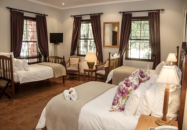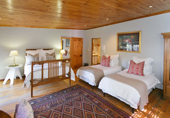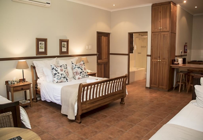 This family cottage sleeps four guests in one Double bed and two twin beds, bar fridge, en-suite bathroom with bath and shower, air-con,tea and coffee facilities. All units have a bar fridge, an en-suite bathroom with a bath and shower, air-conditioning and tea / coffee making facilities.