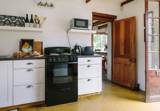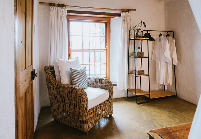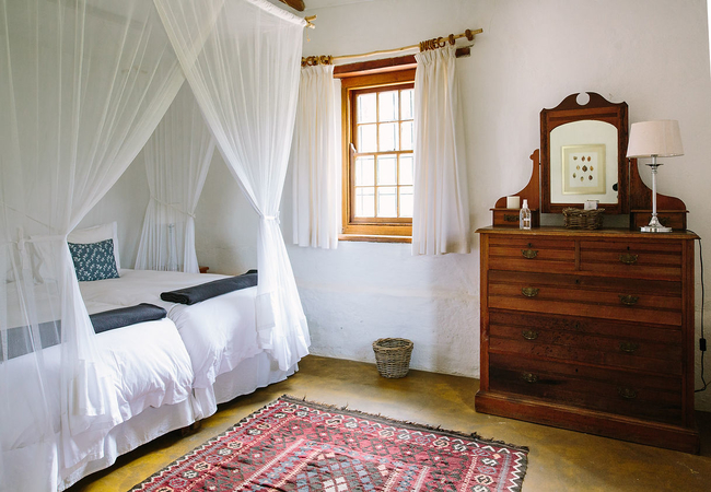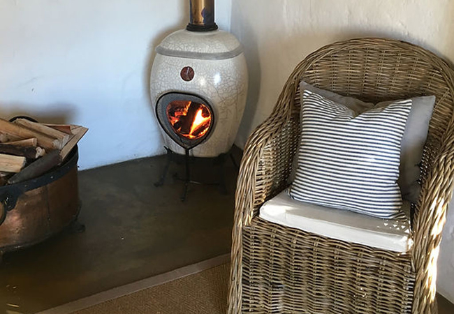 Relax and enjoy the views from the stoep of one of our cottages or cosy up inside with open fireplaces in the kitchen and wood-burning stoves in the living rooms. There are hot water bottles for the colder nights and white cotton bed linen and towelling.