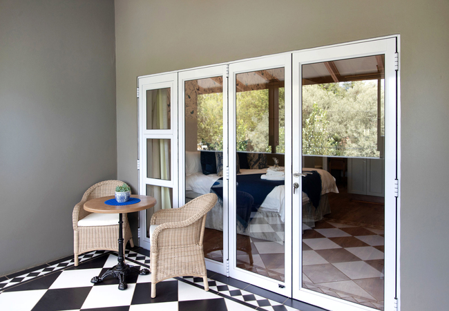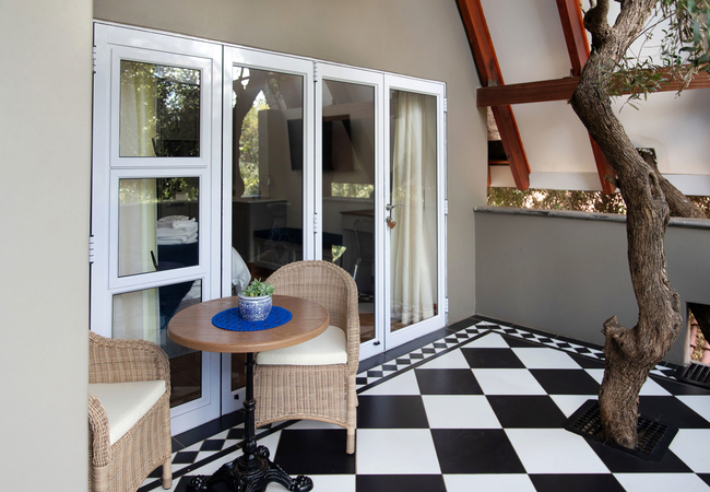 Bella 3 comprises a king-size bed, which can be converted into 2 single beds on request, and an en-suite bathroom fitted with a bath, shower, toilet and basin. The room has a TV with DStv, air-conditioning, a microwave, a bar fridge and coffee- and tea-making facilities. The room has access to a cosy, furnished patio where a continental breakfast can be enjoyed.