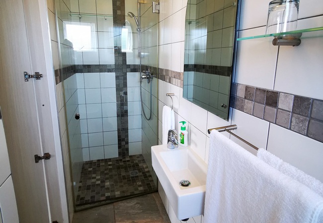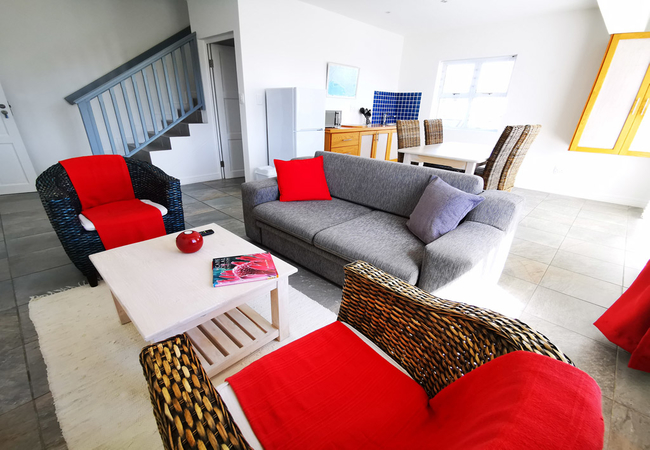 Light and bright 2 bedroom unit overlooking the natural fynbos and the Atlantic Ocean. Separate lounge and dining room area with fully equipped kitchenette downstairs with a high quality sleeper couch. One separate bathroom and private balconies.