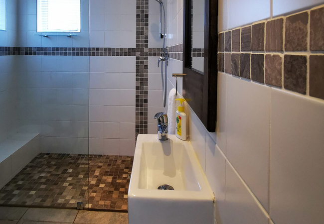 A three bedroom unit with a spacious balcony with braai facilities. There are two bathrooms (shower only) and a fully equipped kitchenette.