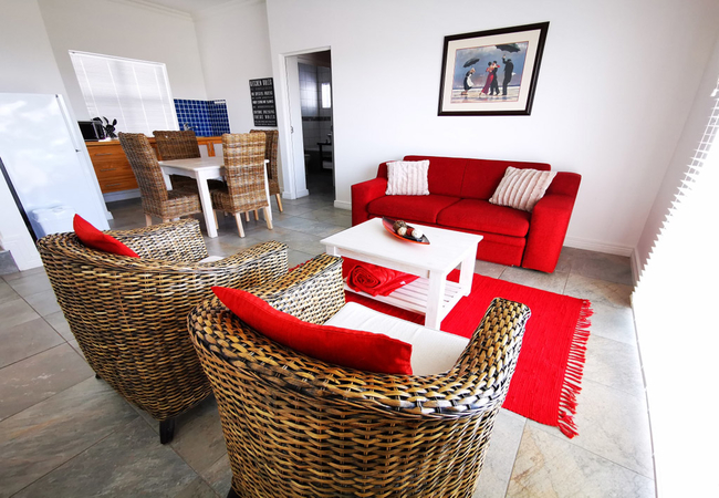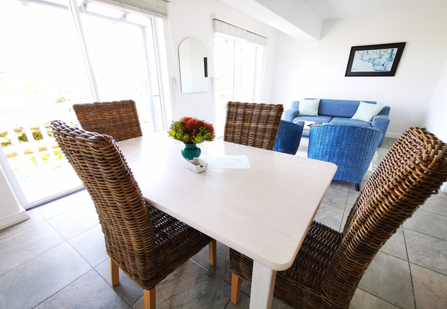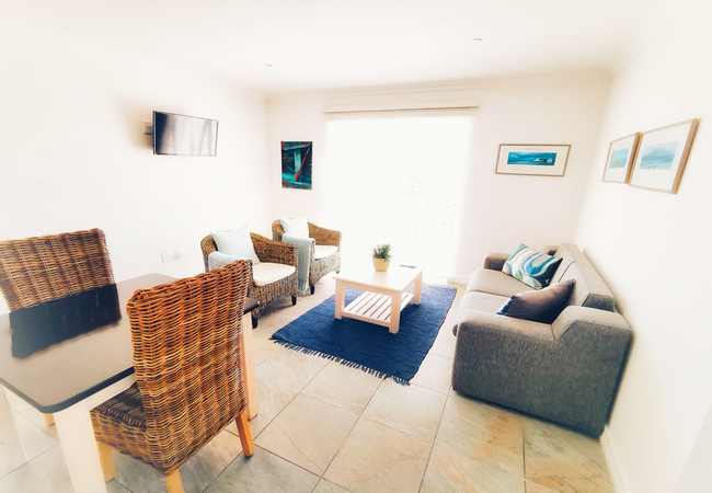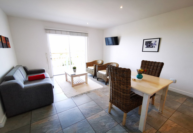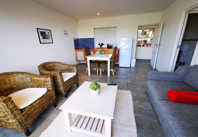 One bedroom unit with a full ensuite bathroom. Separate lounge and dining area with a flat screen TV. Fully equipped kitchenette and a private balcony facing the Atlantic Ocean and natural Fynbos.