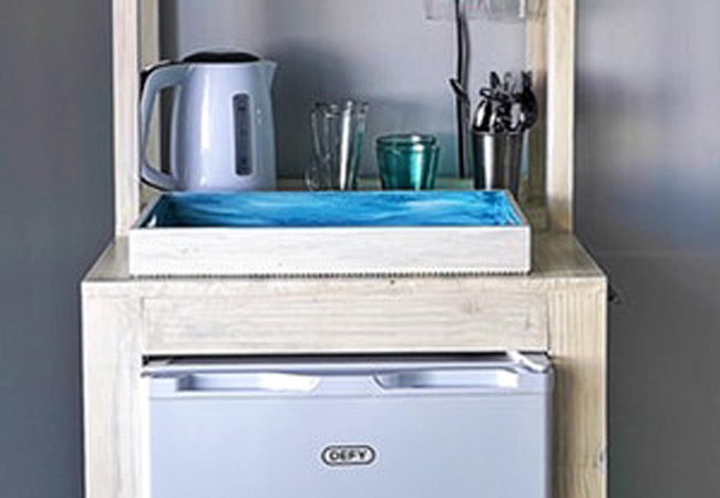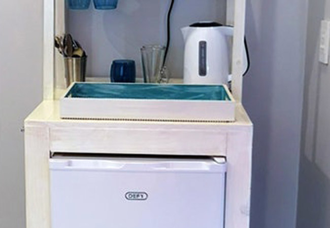 This room is fitted with a double bed and has an en-suite shower, basin and a toilet. In addition, this unit includes a kettle, microwave, toaster and a TV with Netflix. The unit also has an outside seating area.