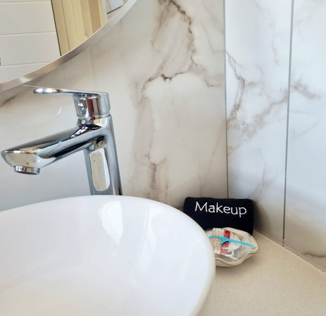 The spacious apartment comfortably accommodates 4 adults and 1 child and features two well-appointed bedrooms. The main bedroom is furnished with a queen-size bed and includes an en-suite bathroom fitted with a shower, washbasin and toilet.