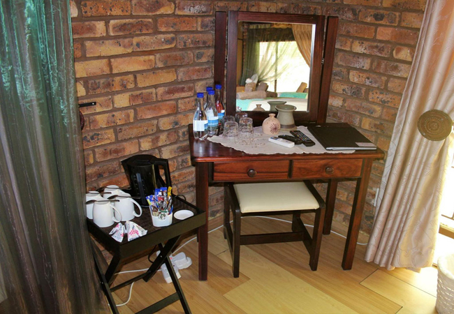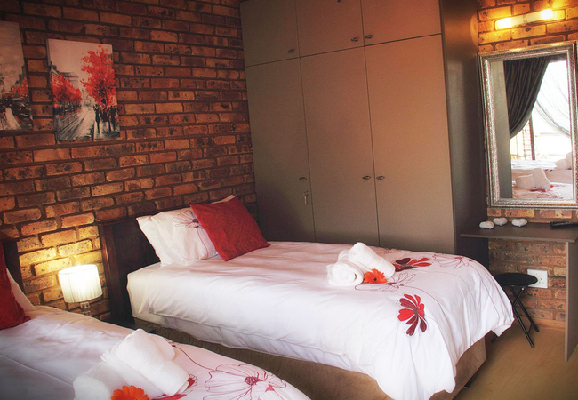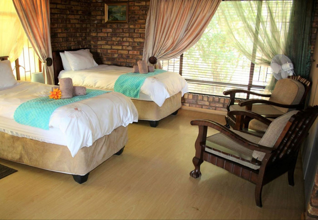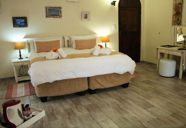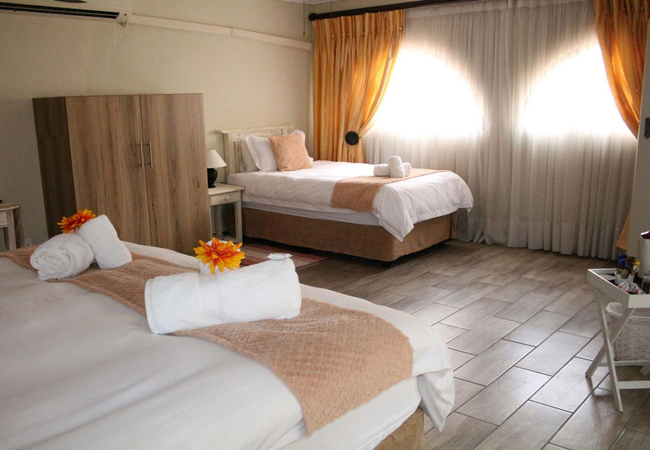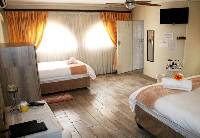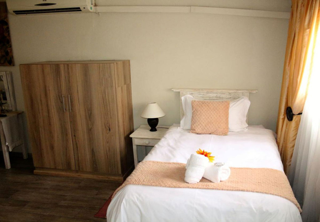 Room 5 is furnished with two single beds (King-size on request) and has a detached but private bathroom fitted with a shower, toilet and basin. Room facilities include DStv, air-conditioning and a tea / coffee station. The room has a balcony.