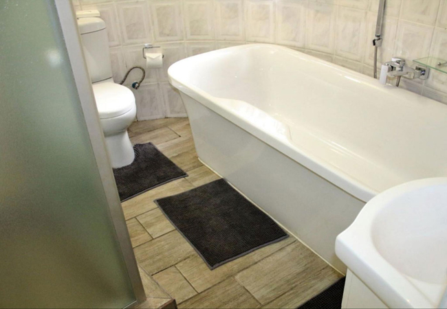 Room 2 is furnished with a double bed and has an en-suite bathroom fitted with a bath, toilet and basin. There is DStv, tea / coffee facilities and Wi-Fi. The room has a TV with satellite channels, tea / coffee making facilities and Wi-Fi. This room shares a balcony with Room 1.