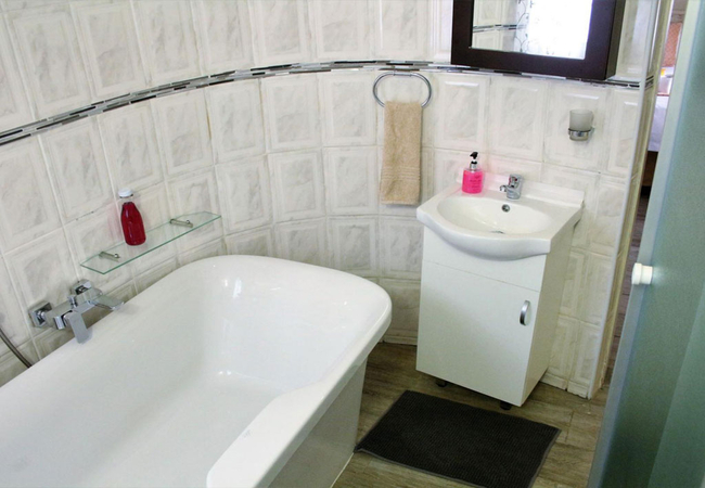 Room 4 is furnished with two single beds (King-size on request) and has a detached but private bathroom fitted with a bath, toilet and basin. Room facilities include DStv, air-conditioning and a tea / coffee station. The room has a balcony.