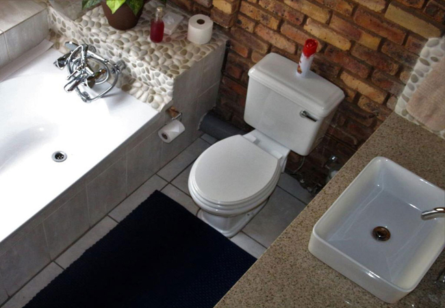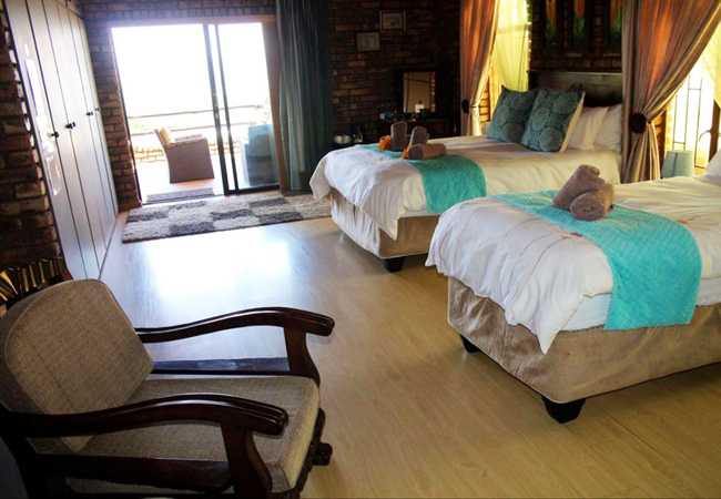 Room 3 is furnished with a Queen-size bed and has an en-suite bathroom fitted with a spa bath, his and hers shower, toilet and basin. Room facilities include DStv, air conditioning, Wi-Fi and a tea / coffee station. The room has a private balcony with views of the dam.
