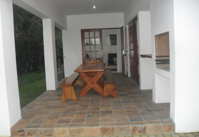 The 4-sleeper unit has a room furnished with a queen-size and 3/4 bed and a full bathroom. The open-plan living area has a double bed and a kitchen with a gas stove. A TV with local channels and Wi-Fi is available. The unit opens onto a verandah with a braai.