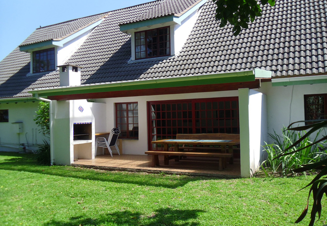 Unit 9 is a spacious double story chalet and comprises of a kitchen, lounge and veranda with built in braai and garden outlook. There are two spacious bedrooms and one bathroom downstairs and a large sleeping area upstairs with bathroom en-suite. There is a trampoline in the garden and the chalet has a TV with SABC channels, but you are welcome to bring your own DSTV decoder (one cable only). Our units are serviced daily (except Sundays and Public Holidays).