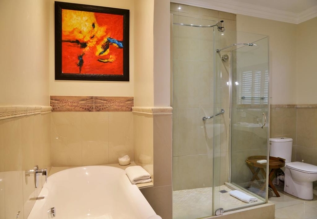 The suite can be a 1 bedroom or 2 bedroom suite. The bathroom is lovely and the suite has a private entrance. Room facilities include Air conditioning Safe, Tea / coffee trays, Linen and towels supplied, Wireless internet, Toiletries, Telephone, Desk, DStv and Room service.