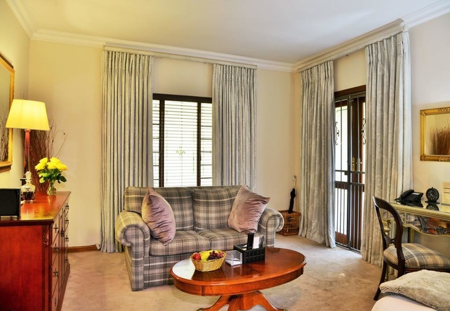 Self-catering suite consists of 2 bedrooms, lounge/dining, bathroom and full kitchen with private entrance. Room facilities include Air conditioning Safe, Tea / coffee trays, Linen and towels supplied, Wireless internet, Toiletries, Telephone, Desk, DStv and Room service.