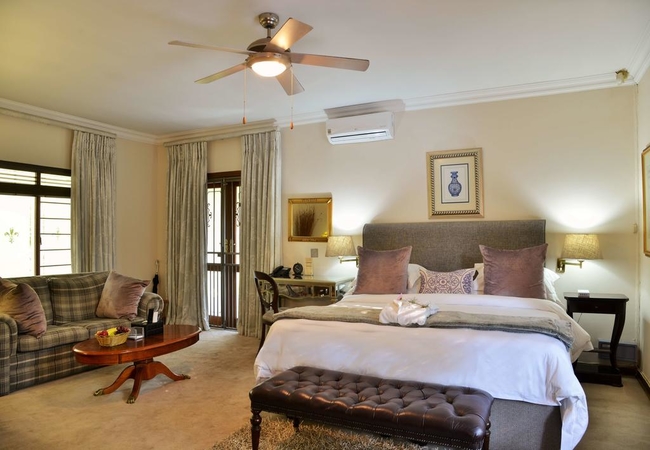 Sunny, spacious and elegant suite with en-suite bathroom and balcony. Room facilities include Air conditioning Safe, Tea / coffee trays, Linen and towels supplied, Wireless internet, Toiletries, Telephone, Desk, DStv and Room service.