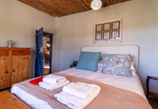Beloftebos Light Cottage in Stanford sleeps eight guests. The bedrooms are each furnished with a double bed and the loft is furnished with four single beds.