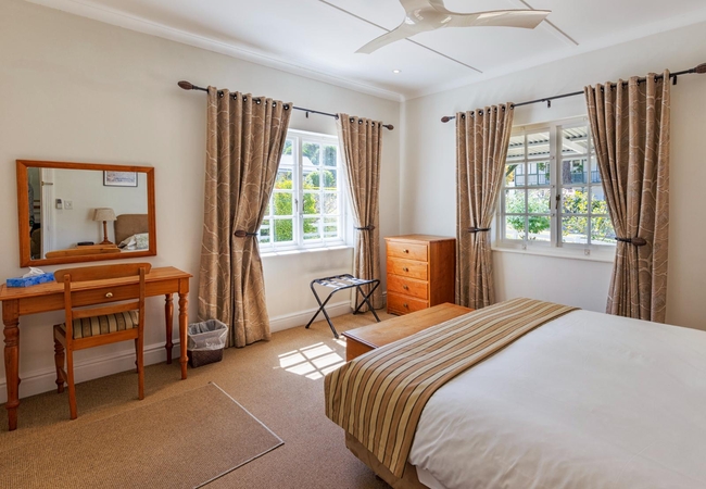 Each cottage has a wide veranda or stoep, a comfortable living room, a fully equipped kitchen and one or two double en-suite bedrooms. In addition, some have a third bedroom or a study, and a dining-room. There is covered parking alongside and the cottages are fully serviced daily.
