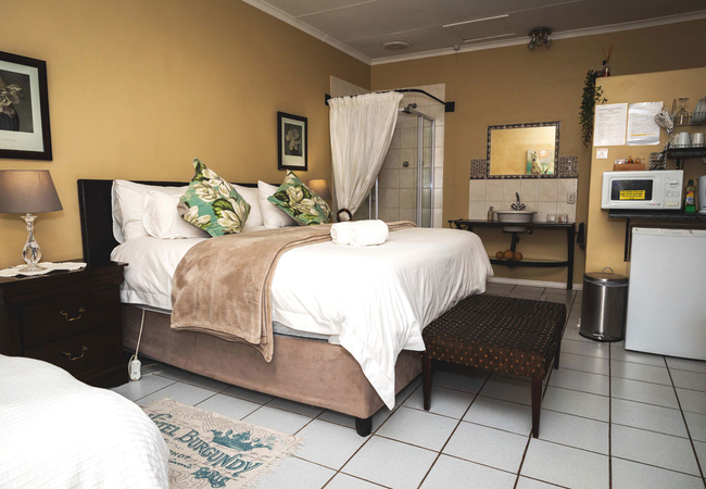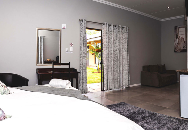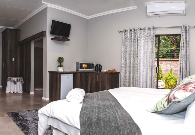 The rooms are furnished with single, double or King-size beds, en-suite bathrooms, a work station, DStv, air conditioner, microwave oven, fridge, coffee / tea amenities and unlimited Wi-Fi. Secure parking with a remote-control gate is available for peace of mind. Smoking is not permitted.
