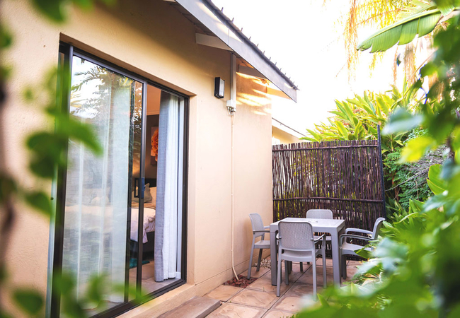 Blydskap is furnished with two single beds or a King-size bed if preferred. There is private entrance and private patio to each room. There is an en-suite bathroom, a work station, TV with DStv / satellite channels, air conditioner, microwave oven, fridge, coffee / tea amenities and unlimited Wi-Fi.