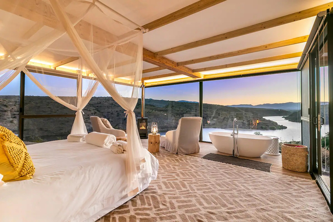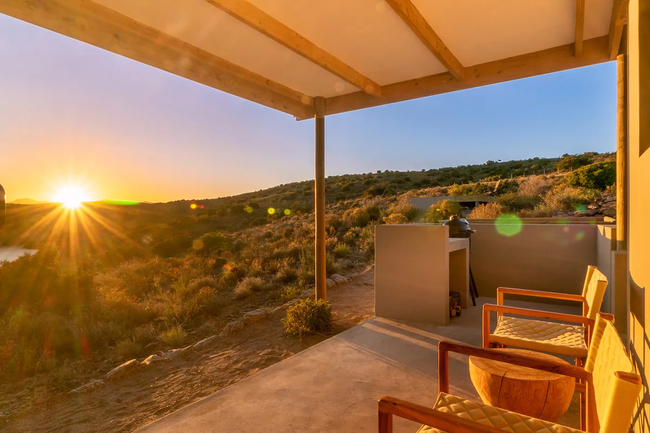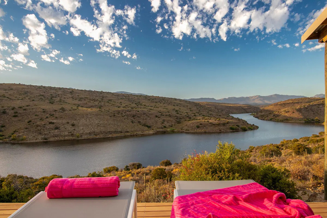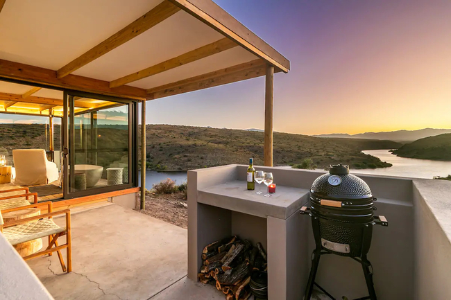 My partner and I visited Berghuisie in June, 2024 and spent the weekend in complete luxury! The location on the dam was absolutely stunning, the views priceless and the peace we enjoyed for the weekend was perfect. The cottage with its glass walls, views of the dam and wildlife, comfort and coziness was perfect! We love being off grid and Berghuisie fulfilled all we were looking for. Annatjie warmly welcomed us on arrival and immediately made us feel at home. She was very reachable when we had questions. We went on a game drive with Alwyn that evening and learned so much about the area and I was able to see animals I've never seen, what a treat for this American girl! We ordered our proteins before arrival: Springbok, Gemsbok, lamb and chickens, and we have loved eating them since returning home. We cooked the Gemsbok while there and it was delicious! I was able to reach Annatjie for cooking recommendations on how to prepare the Gemsbok - I was so appreciative as I wasn't sure how to make it! They delivered to us fresh Vetkoek that was so kind and absolutely delicious! With it, we had the fresh organic produce provided. We made fires both nights that kept us warm and the cottage warmed right up. Our second night there we took a nice hot bath overlooking the dam. We spent time on the decks watching the birds and other wildlife and Saturday afternoon took a hike to the dam. We look forward to our next trip to Berghuisie and highly recommend it for a couples getaway! Alwyn and Annatjie made the experience just wonderful, the perfect people to be running Aardvark!