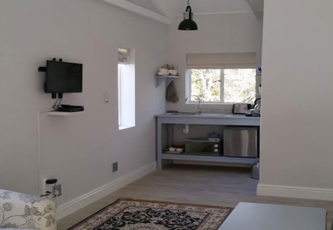 A luxury, self-catering garden-suite with a continental breakfast in the room. The room offers a Queen size bed, en-suite bathroom, fully equipped kitchenette, hairdryer, desk and chair, seating area, DSTV, Wifi and private patio with mountain view.