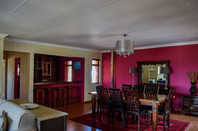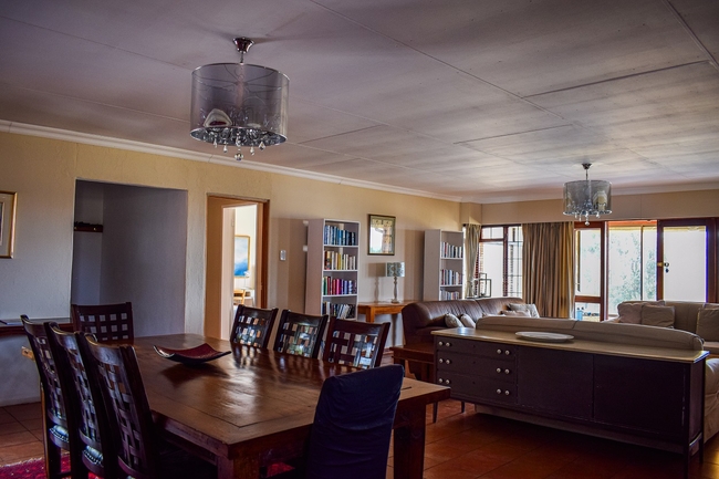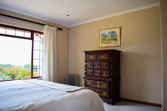 Berryfields is a beautiful house with views across the valley and is situated just 6km out of Dullstroom. A great place to relax and recharge in the heart of Mother Nature. Berryfields has four bedrooms. The main bedroom has a King-size bed and en-suite bathroom with a shower. The second bedroom has a Queen-size bed and the other two bedrooms each have two twin beds. These rooms share a bathroom with a bath and shower. The kitchen is fully equipped and includes a stove, oven, fridge, microwave, dishwasher, kettle and toaster. The living, dining area and bar area are open plan with a fireplace and are comfortably furnished. There is a TV with DStv / satellite channels. An enclosed verandah has lounge furniture and a built in braai.