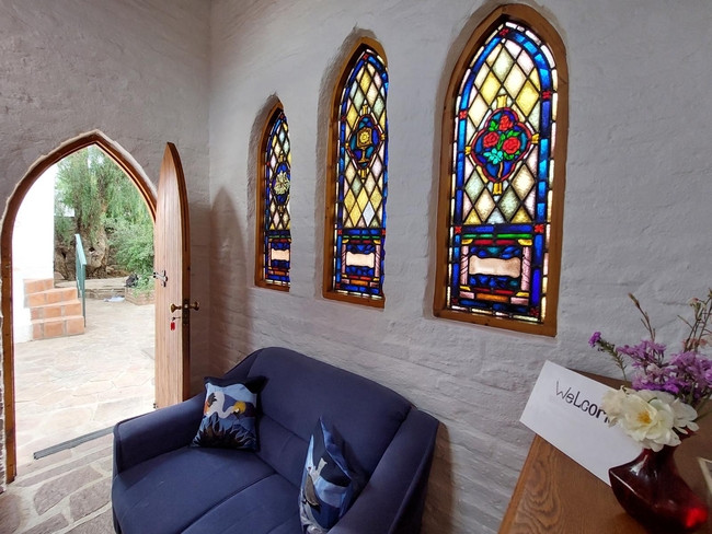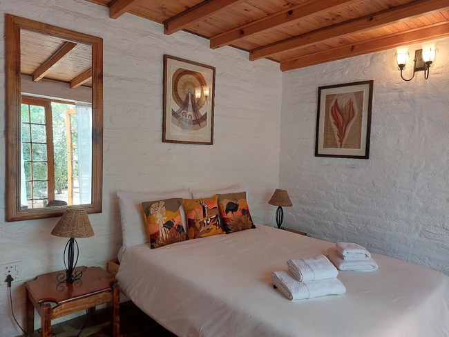 The Priory B&B, inspired by its namesake in England and adorned with stunning 1820 stained glass windows, accommodates up to six guests. It features a beautiful stone courtyard with a private braai area, perfect for stargazing. Staying here offers guests the unique opportunity to connect with local indigenous artists and directly support a transformative community project.