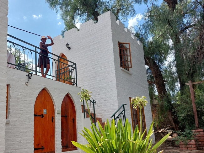 Experience a one-of-a-kind stay in a fairy-tale tower and charming Priory, located within a vibrant Arts Centre in the Karoo village of Nieu Bethesda. Just a two-minute walk from the captivating Owl House and set against a stunning mountain backdrop, the Bethesda Arts Centre Tower promises an unforgettable visit under the expansive Karoo night sky.