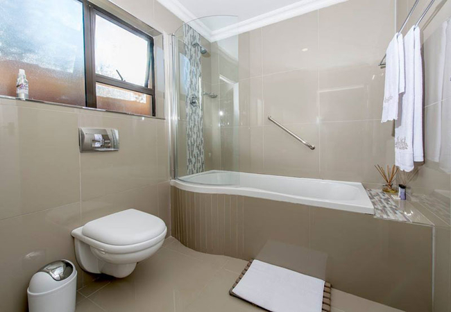 The Double Room Newton is furnished with a double bed. The en-suite bathroom is equipped with a shower over bath. Facilities in the room include TV with DStv, free Wi-Fi, air conditioning, microwave, bar fridge, coffee and tea making facilities, ironing facilities.