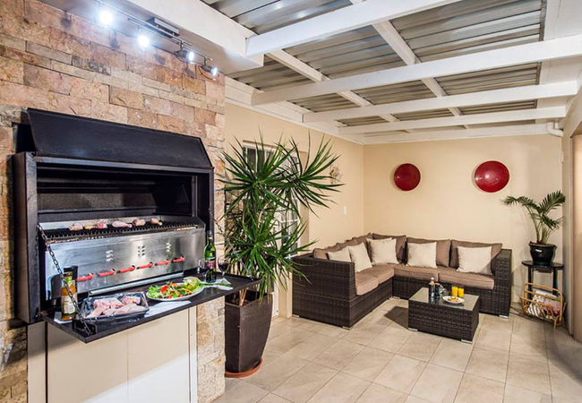 The Double Room Bax is furnished with a double bed. The en-suite bathroom is equipped with a shower. Facilities in the room include TV with DStv, free Wi-Fi, air conditioning, microwave, bar fridge, coffee and tea making facilities, ironing facilities.