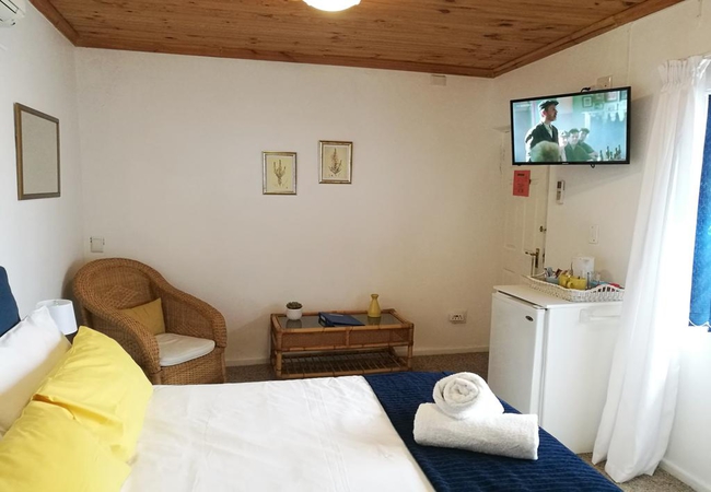 Our economy double room has a queen size bed and ensuite bathroom. It is air-conditioned and equipped with fridge, 32" flat screen TV, selected premium DSTV channels, tea/coffee making facilities, electric blanket, hair dryer and a safe.