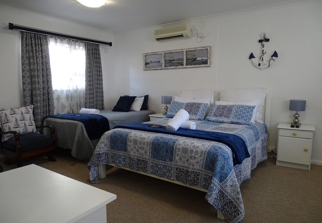 One double bed and one set of bunk beds. Air-conditioned and equipped with a fridge, TV (cable channels) and DVD player. You will find coffee and tea making facilities in all the rooms. Rooms come with a private bathroom fitted with a bath or shower.