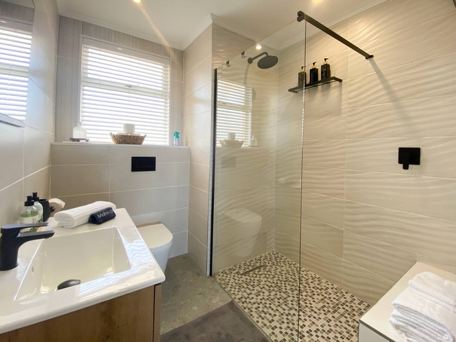The living space follows an open plan layout that incorporates a fully equipped kitchen with a stove, oven, microwave, fridge freezer, crockery, cutlery, and all essential cooking utensils. A dishwasher is provided for added convenience. Adjacent to the kitchen, the lounge area is tastefully furnished with comfortable seating, a smart television with access to YouTube and Netflix, and complimentary Wi Fi for guests who prefer to stay connected, even while escaping.