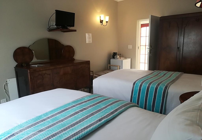 The Standard Twin room is furnished with a two three quarter beds and a bathroom with a large shower. The room boasts a TV with DStv / satellite channels, deluxe toiletries, bottled water.