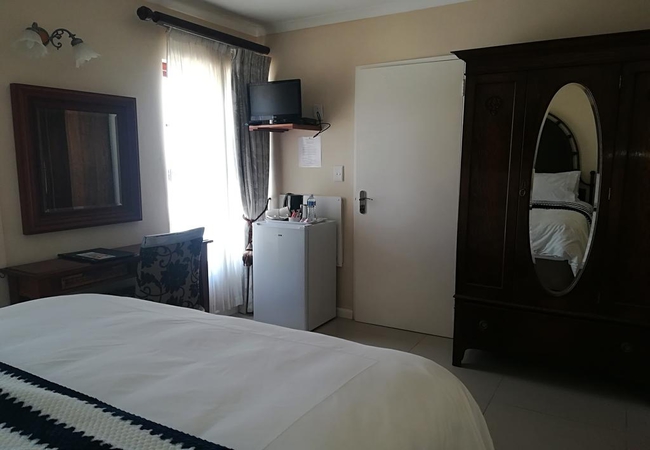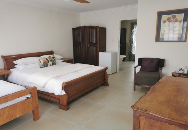 The Standard King room is furnished with a King -size bed or twin beds, a single bed and a has a bathroom fitted with a large shower., toilet and basin The room is equipped with a TV with DStv / satellite channels, deluxe toiletries, bottled water.