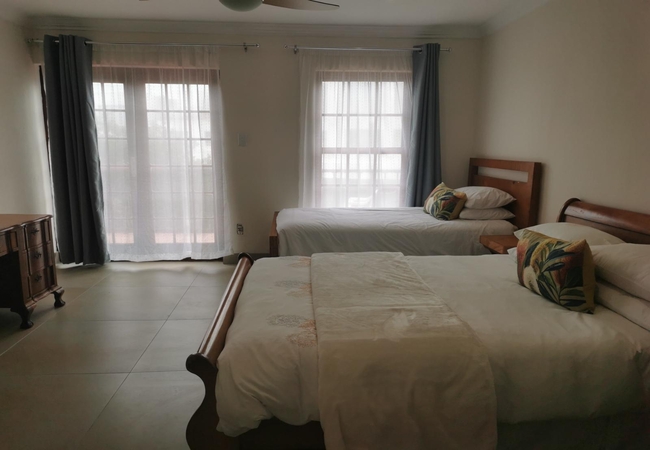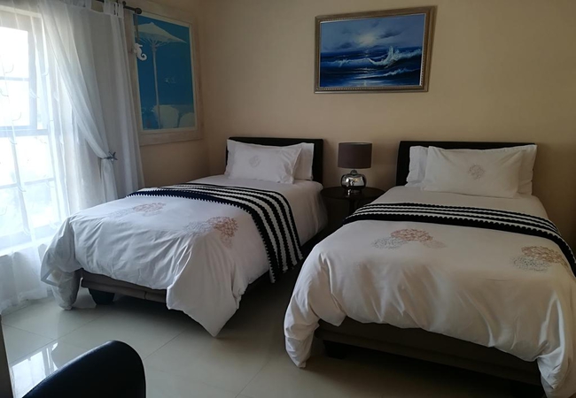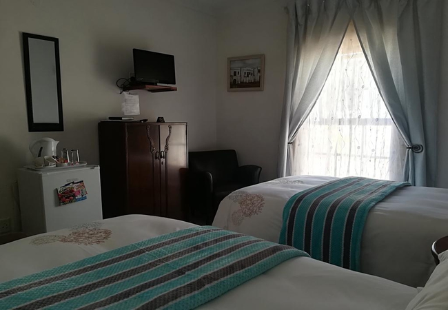 The Standard Twin room is furnished with a a Queen-size bed and a single bed and a bathroom fitted with a large shower, toilet and basin. The room boasts a TV with DStv / satellite channels, deluxe toiletries, bottled water.
