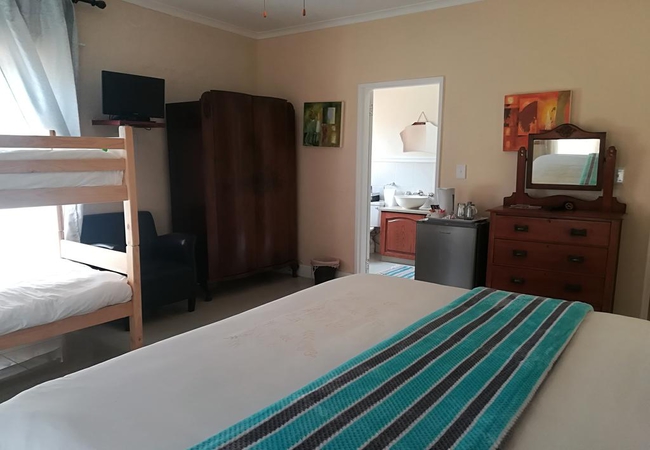 Ideal for a family of up to 4 persons, this Luxury Room has a King-size bed and a double bunk bed. There is a bathroom with a large shower. The room boasts a TV with DStv / satellite channels, deluxe toiletries, bottled water.