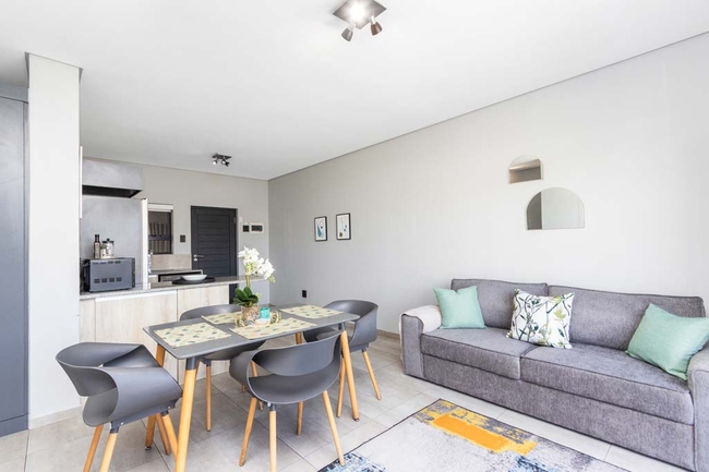 Blouberg Mews is a contemporary, open-plan holiday apartment in Cape Town, situated along the scenic west coast of Table View, a picturesque suburb famed for its unrivaled view of the iconic Table Mountain.