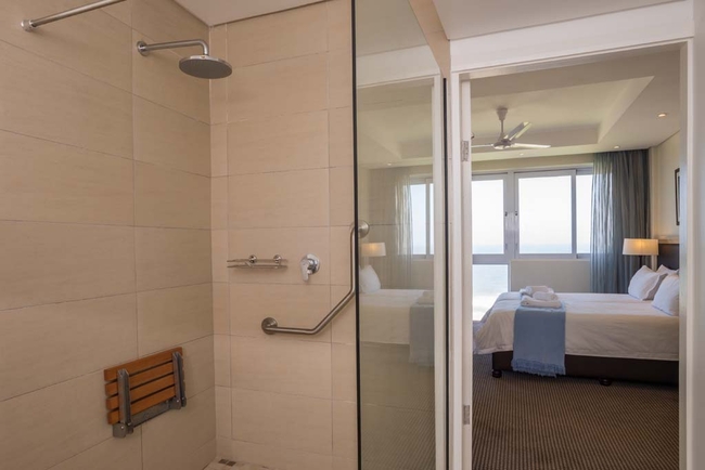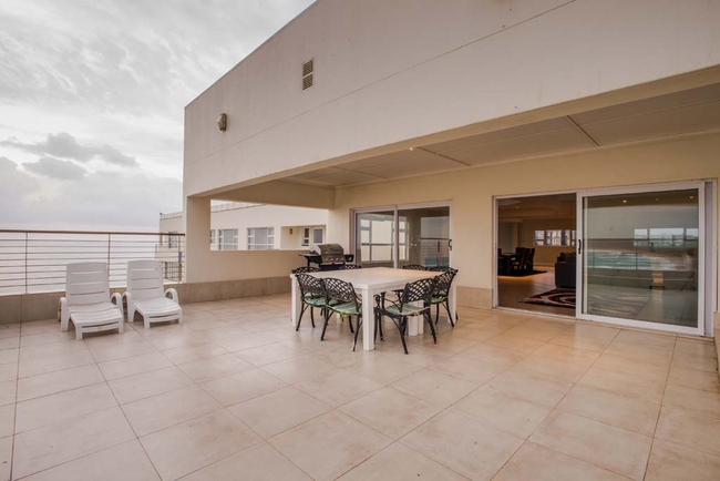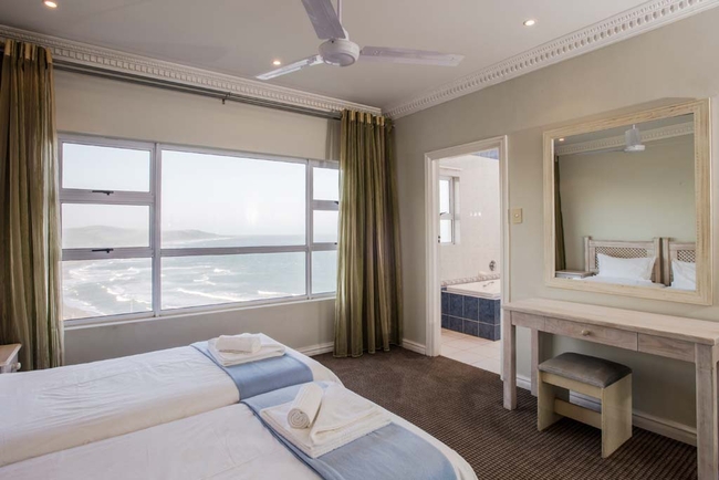 Be the king of your own castle in our ultra-spacious penthouse suite with sea views. Perfect for small groups and families, there are five bedrooms and four bathrooms, comfortably accommodating 12 people. Four rooms are furnished with double beds and the fifth has twin beds. The penthouse bathrooms are fitted with a bath / shower, toilet and basin. There is a TV lounge, dining table and a private patio with braai facilities.