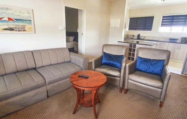 Enjoy our luxurious Superior rooms that have either king or twin beds with an en-suite bathroom with a shower, toilet and basin. There is a double sleeper couch in the lounge area, a fully equipped kitchen and a breakfast nook. All rooms are equipped with selected DStv channels, coffee and tea facilities, ceiling fans, as well as a daily cleaning service.