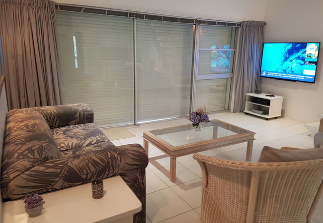 The penthouse is equipped with DStv and there is free Wi-Fi. The balcony has braai / BBQ facilities and guests are welcome to make use of the swimming pool. Undercover parking is available.