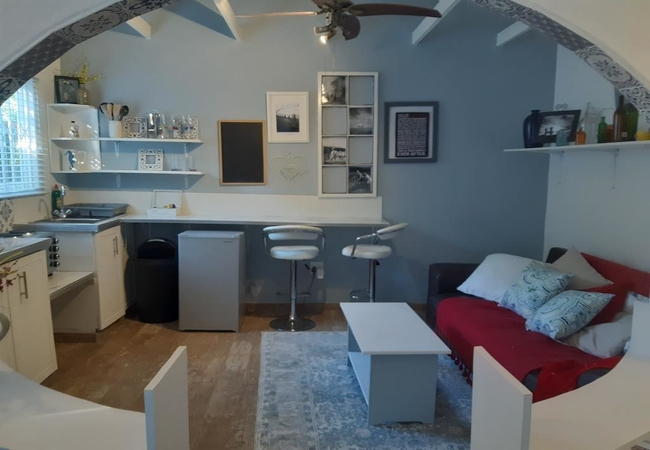 Dragonfly Cottage is an open-plan cottage with exposed beams and comprises of a King-size bed and an en-suite bathroom with a shower, toilet and a basin. The kitchen has a stove, oven, fridge, microwave, tea / coffee making facilities, crockery and cutlery. It has a dining area with ample seating where guests can enjoy their meals together. There is also a TV with DStv. The apartment also walks out to a private garden with braai facilities.