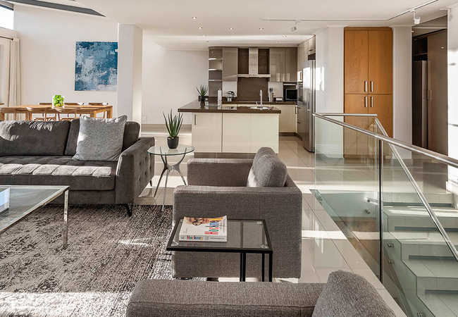 Blue Views Penthouse Four is a three bedroom penthouse offering Cape Town self catering accommodation in a truly unique location with unsurpassed sea and mountain views 30m from Camps Bay beach.