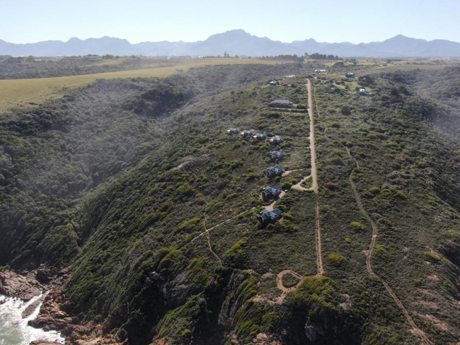 8 of our chalets boast a beautiful sea view, one chalet is situated a bit further away and offers only the valley view. The houses are built on 10 hectares of land, zoned as a private nature reserve. It is located 8 kilometres away from George on the Mossel Bay road. The dolphins and whales can be seen (in the winter) from the comfort of your bedroom.