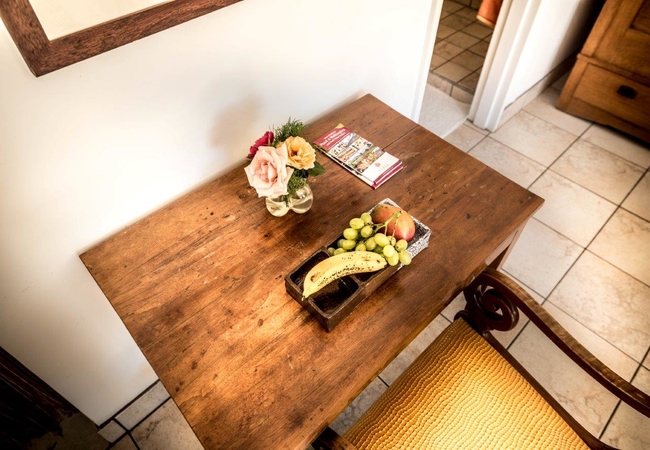 Perfectly suited for a couple, Boerfontein Garden Suite has one bedroom furnished with a double bed and an en-suite bathroom with a shower. Bed linen and towels are provided as are complimentary toiletries.