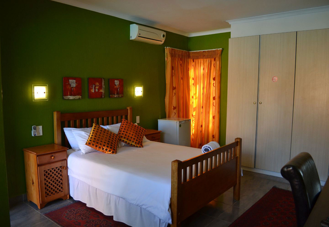 This Double Room is furnished with a double bed. The en-suite bathroom is equipped with a bath only. During your stay at this award winning 4 star guest house you can make use of the swimming pool, spa, bar and braai facilities.